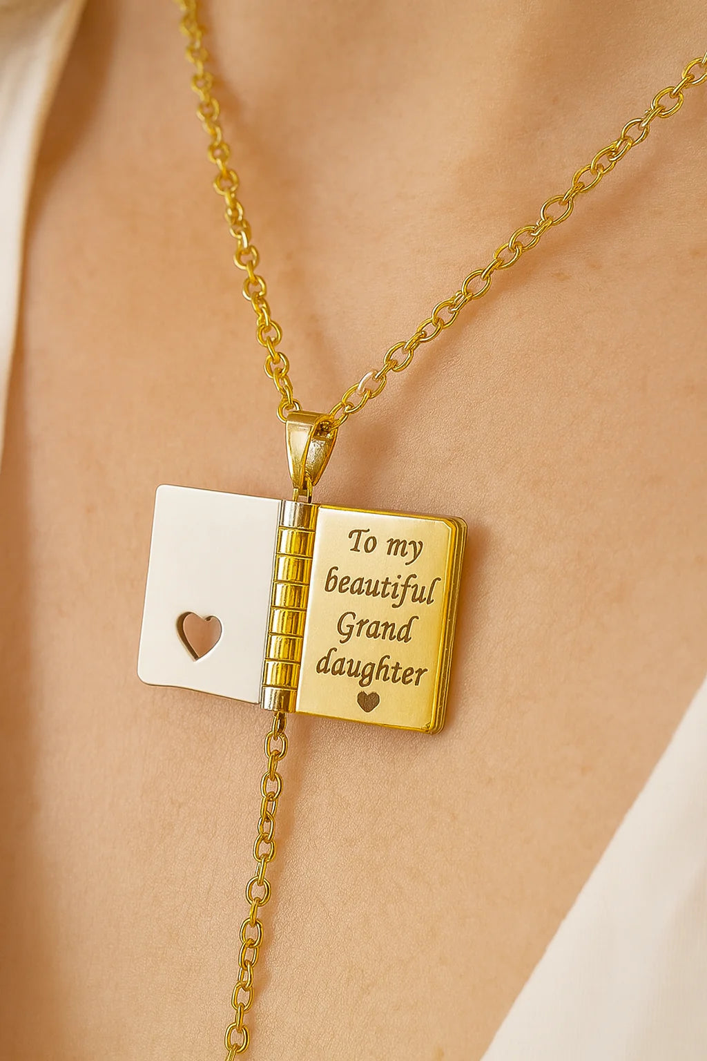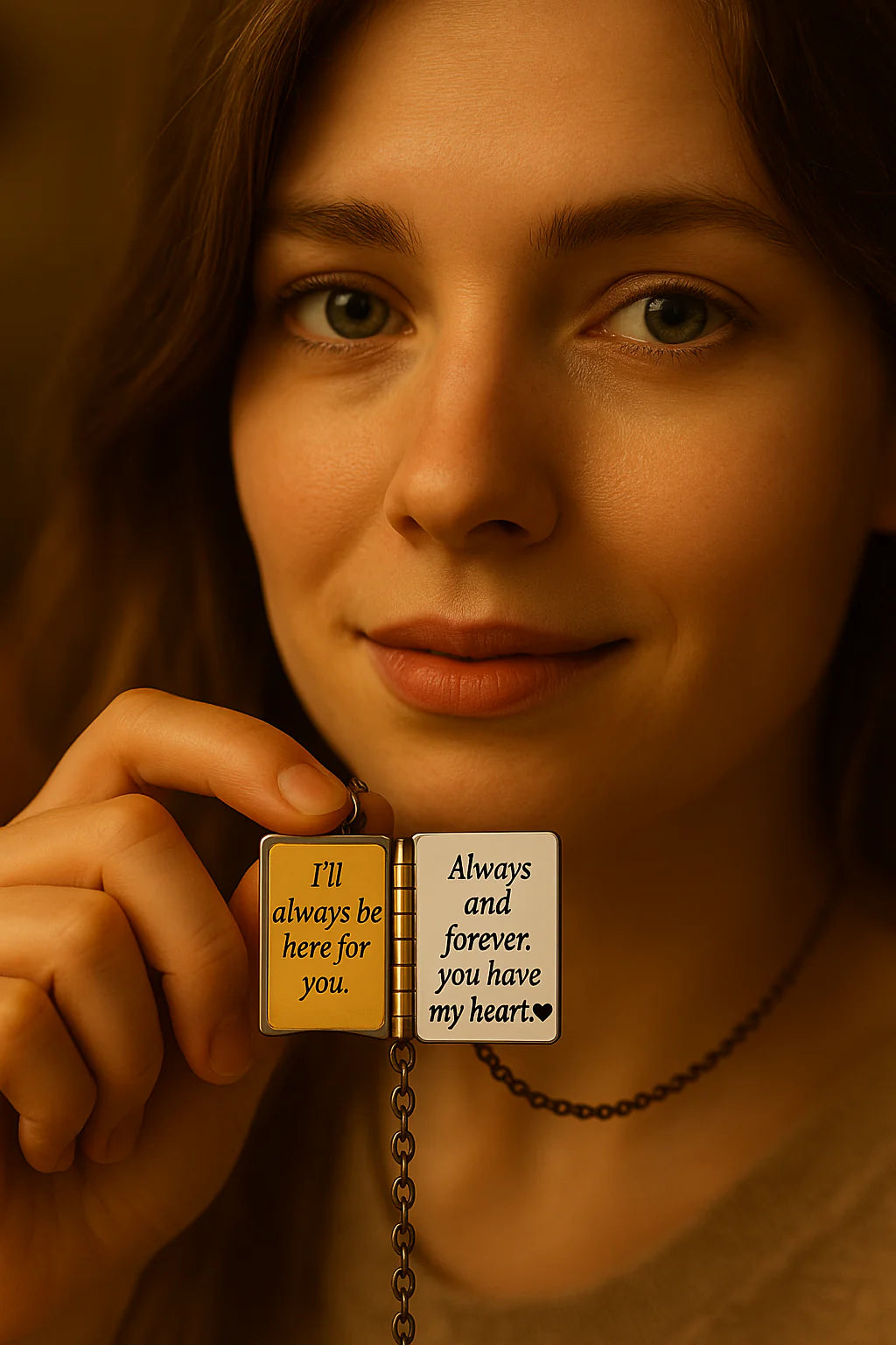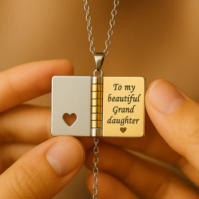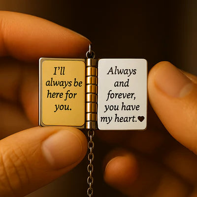 Yes! The book pendant opens to reveal a sweet engraved message inside—making it a one-of-a-kind surprise.
