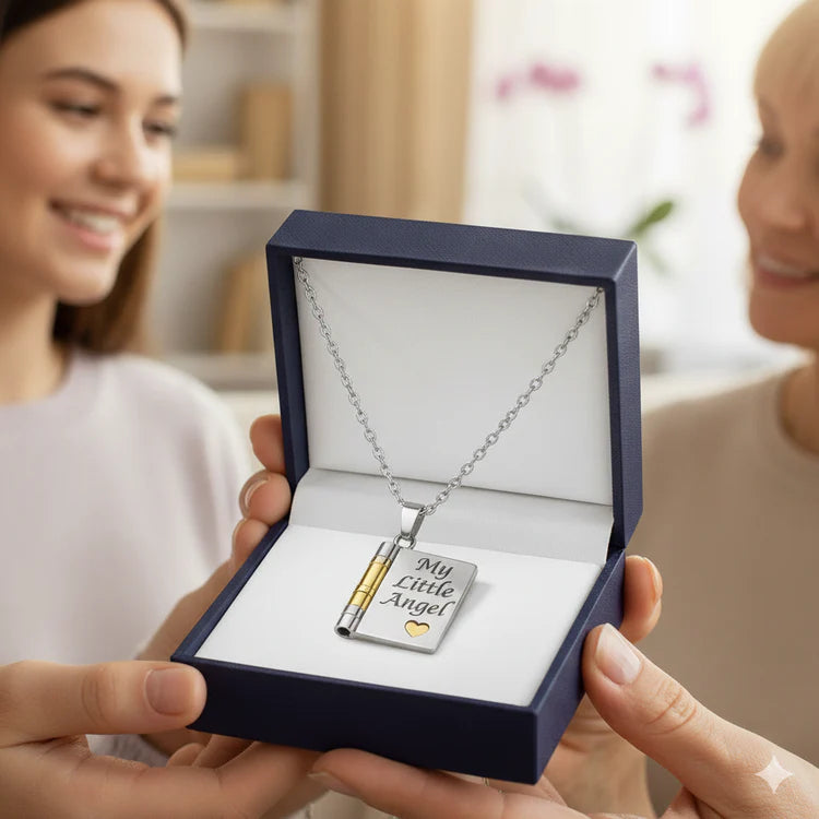 One day she’ll grow up, chase her dreams, and maybe even live miles away. But this necklace will whisper the one thing distance can’t change — she’ll always be your little angel.